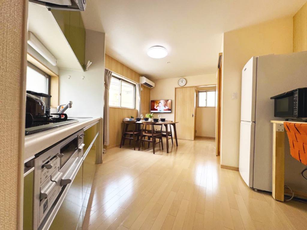 こちらは3階建ての一軒家民泊で、広々とした屋上テラスを備え、ゆったりとおくつろぎいただける空間となっています。和室1部屋と畳敷きのシニア向け和室1部屋の計2部屋があり、最大5名様までご宿泊いただけます。ご家族や複数世代でのご利用にもおすすめです。